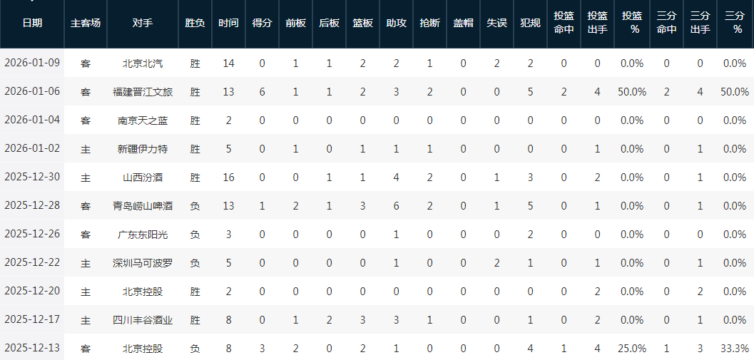 回顾本赛季的前11场比赛,于德豪在进攻端对球队的帮助几乎为零,场均只有0.9分和2次助攻,三分球命中率是全队最低的21.4%,整体投篮命中率更要命,达到令人发指的17.6%。而在擅长的防守端,他的作用也没有达到期待,上场负责盯防对手小外援的他,多数时候被人打爆。此役对阵北京,他就完全跟不上杰曼的速度,被对手得到20分。