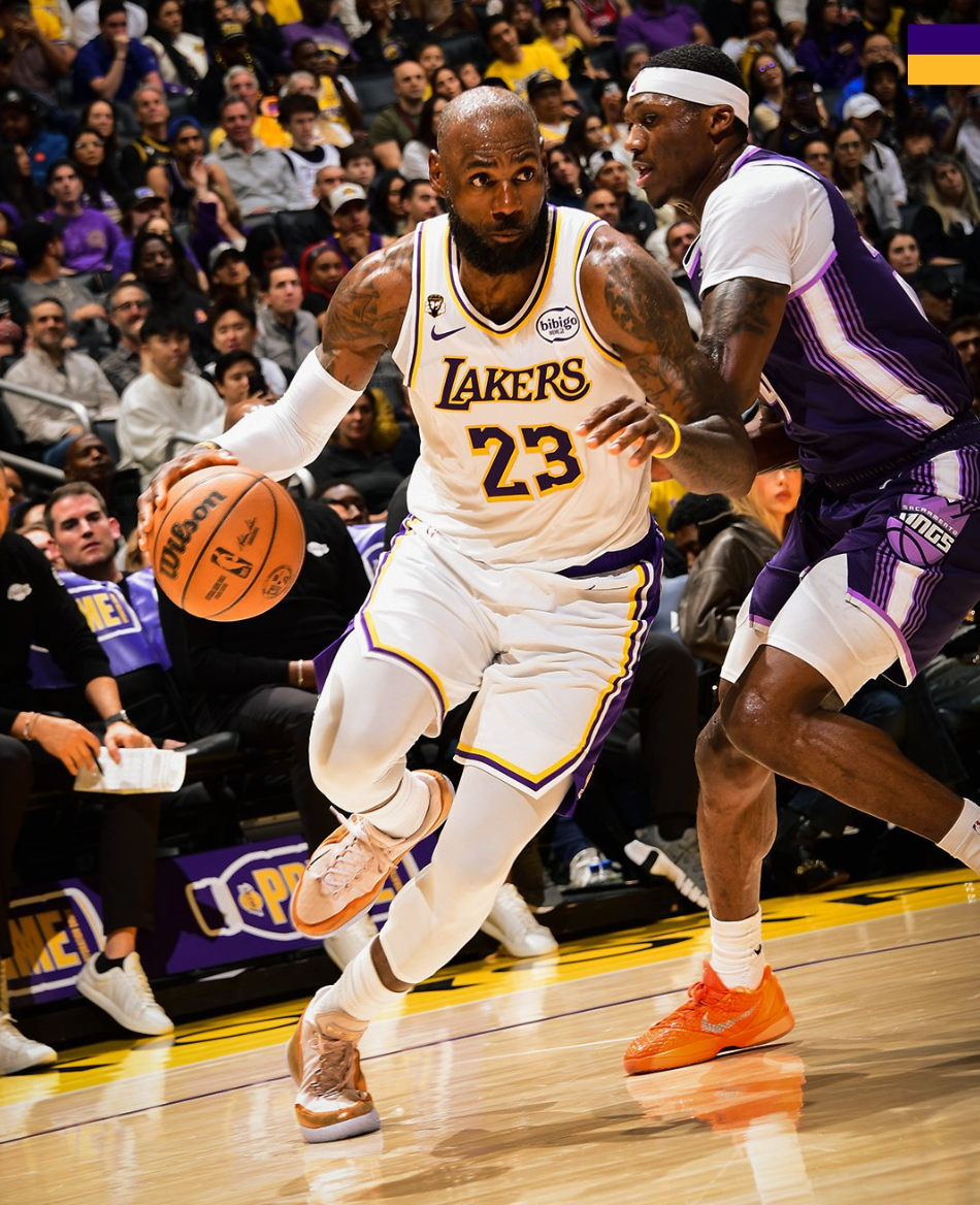 这场比赛勒布朗-詹姆斯也再度迎来里程碑:1.詹姆斯完成湖人生涯3667+升至队史第五位;