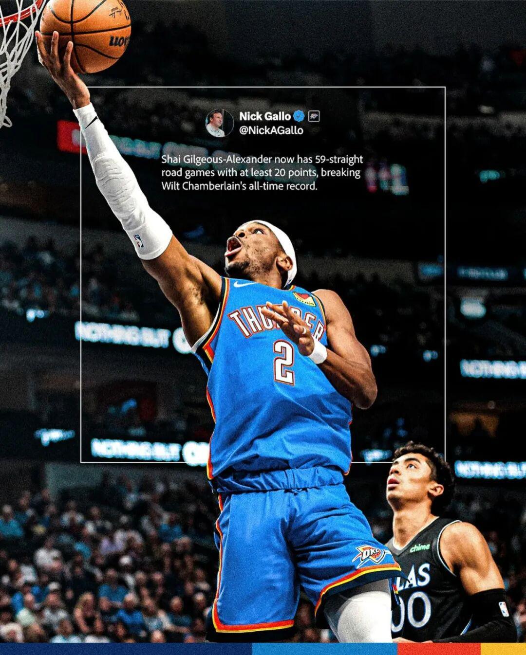 不过在客场连续20+场次上,亚历山大已经完成了超越,本场是他连续第59场客场拿下20+,超越张伯伦在1962-63赛季创造的58场纪录,升至历史第一。