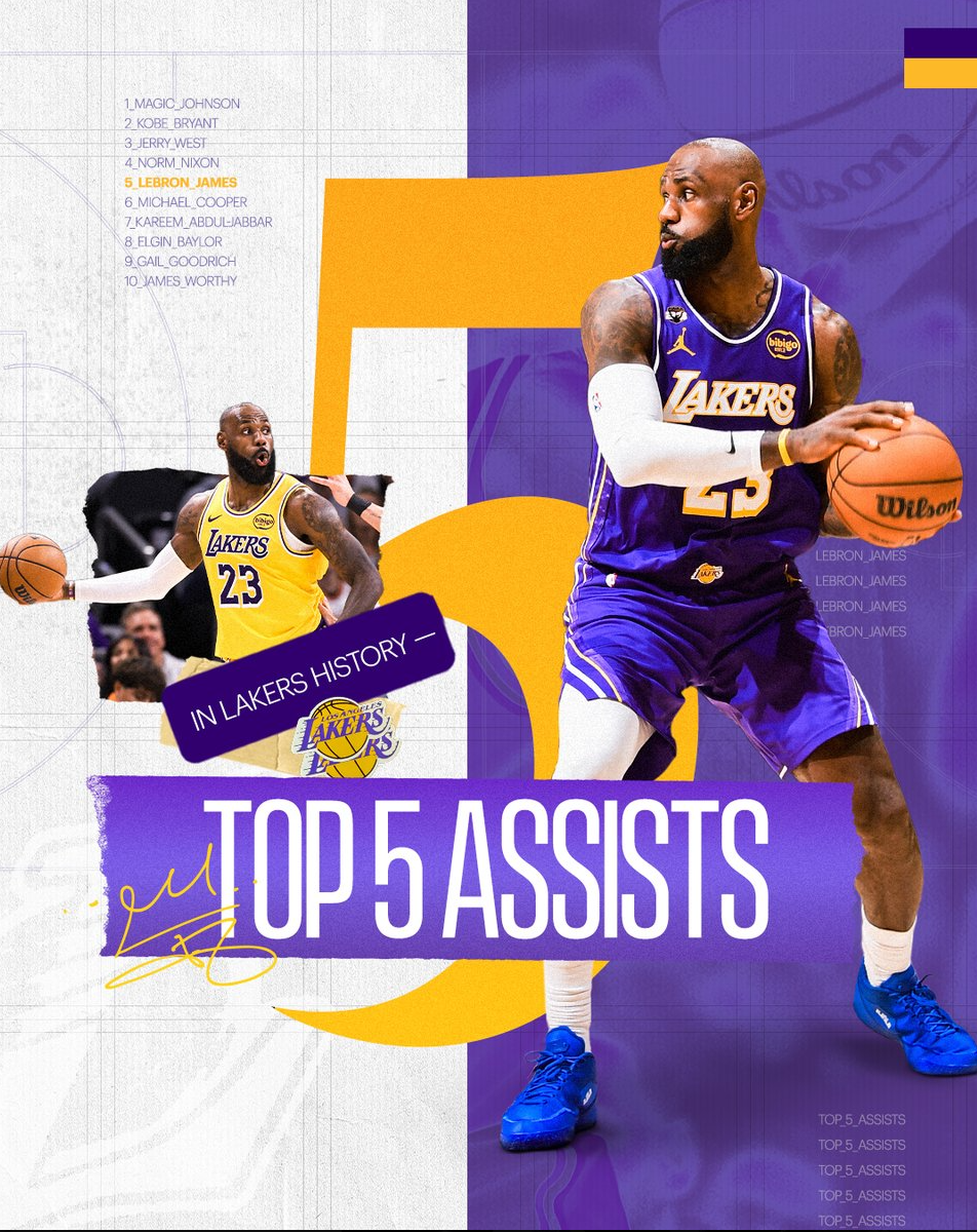 这场比赛勒布朗-詹姆斯也再度迎来里程碑:1.詹姆斯完成湖人生涯3667+升至队史第五位;